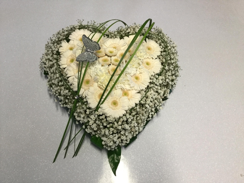 This Beautiful heart is made of Gerbras, Gyp, Carnations and Orchids and plated grasses.